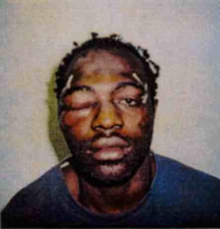 This is a photo of Rodney King after he was arrested in March of 1991. King led the LAPD on a wild car chase and eventually was pulled over with a blood alcohol limit of .19. Even though King continued to resist arrest, many feel that the police used excessive force. A bystander videotaped the beating and it was seen by the public nationwide. During the controversial trial, it was decided that a new judge and jury would be used. The new jury contained 8 caucasians, 1 Latino, and 1 Asian. 3 out of 4 arresting officers were acquitted of all charges. This caused an outrage and eventually sparked the infamous L.A. riots. Since then there has been a much deeper look into police brutality and racial discrimination.